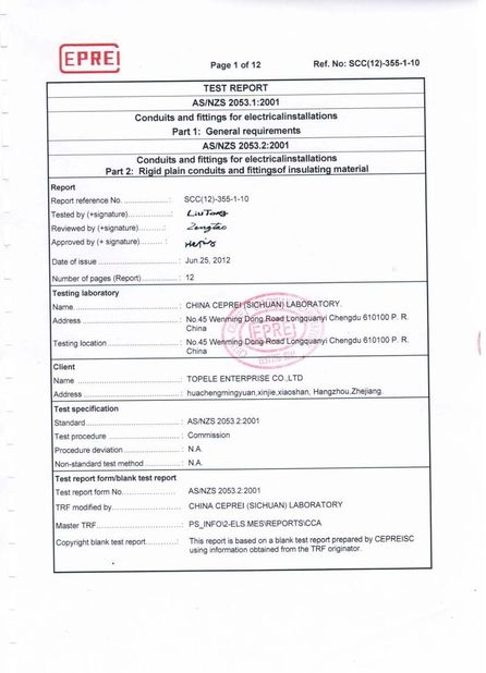 スタンダード:TEST REPORT 番号:SCC(12)-355-1-10 発行日:2012-06-25 範囲/範囲:AS/NZS 2051.2:2001 Standard で発行:CHINA CEPREI (SICHUAN) LABORATORY |