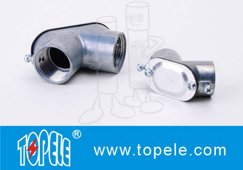 セット・スクリュー・プル・エルボウは,ワイヤを引っ張るのを容易にするための取り外せるカバーを持っています. EMTエルボウは高強度亜鉛合金で鋳造され,腐食耐性のために亜鉛塗装されたカバーです..